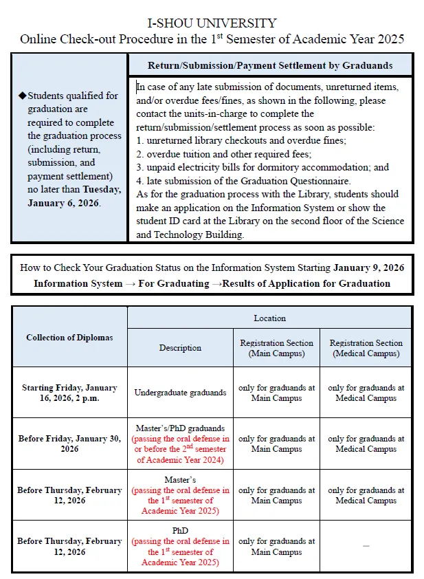 I-SHOU UNIVERSITY Online Check-out Procedure in the 1st Semester of Academic Year 2025
