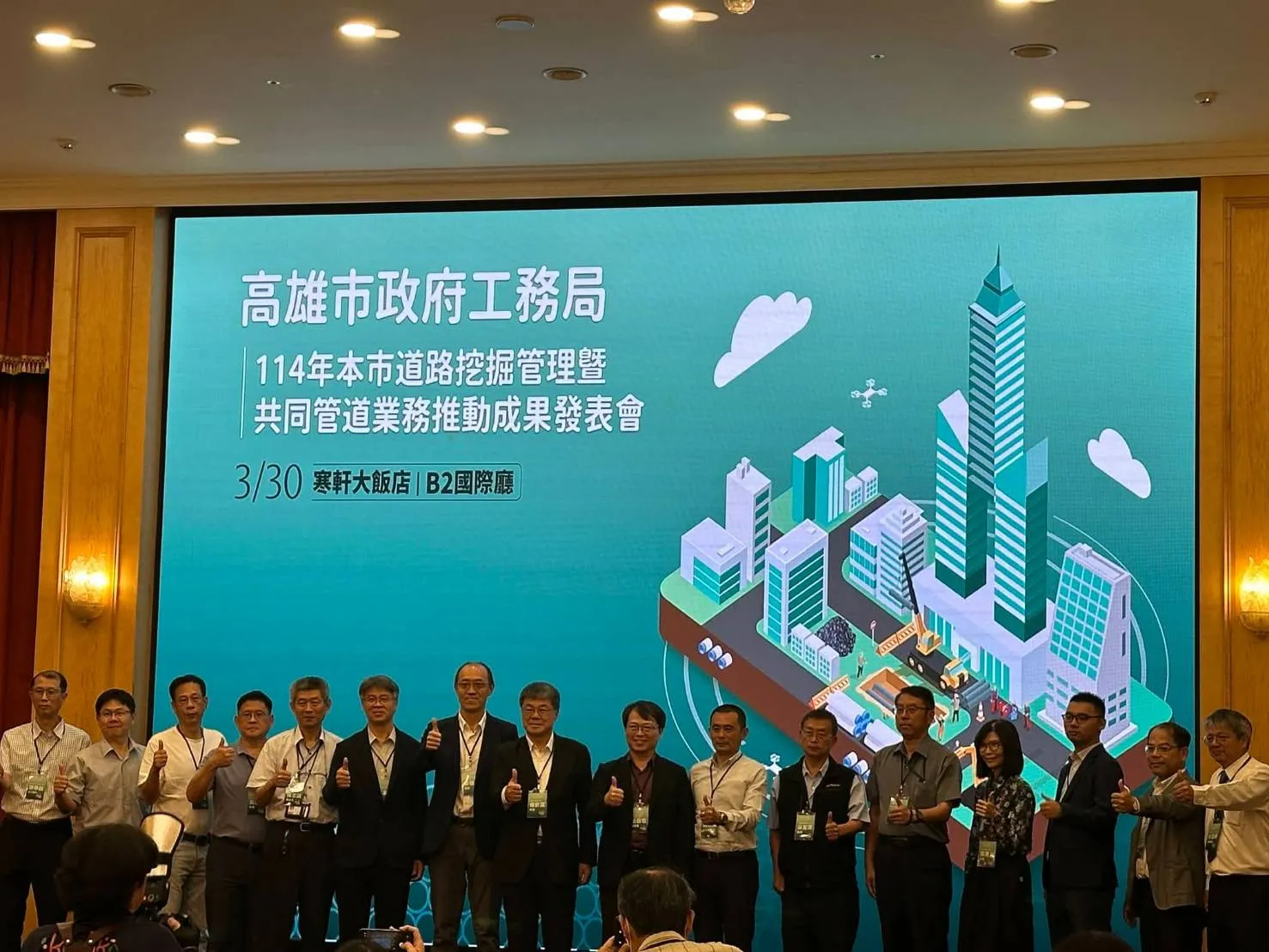 高雄市政府工務局於3月30日舉辦「114年本市道路挖掘管理暨共同管道業務推動成果發表會」,邀集產、官、學界代表共同參與,展示高雄市在道路挖掘管理、地下管線整合及智慧城市治理上的最新成果,現場並透過專題演講與成果攤位交流,展現城市基礎建設管理的推動成效。